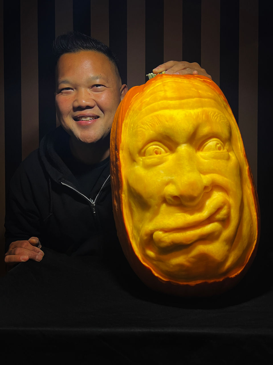 Full-time pumpkin carver touring the country, teaching carving classes, and creating giant gourds for all to enjoy. Semi-finalist on Outrageous Pumpkins (S3) and featured on Halloween Wars S14 with Two Ghouls and a Butcher.